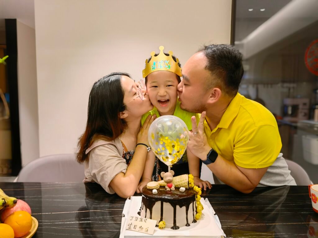 蛋糕就摆在闪闪发亮的生日桌上,绚丽的糖霜和缤纷的水果装饰让人垂涎欲滴。爸爸妈妈为小Yusen唱起了生日歌,伴随着温馨的旋律,蛋糕成为了派对的主角。随着蜡烛的点亮,Yusen闭上眼睛,许下了一个小小的心愿,等着吹灭蜡烛的那一刻。